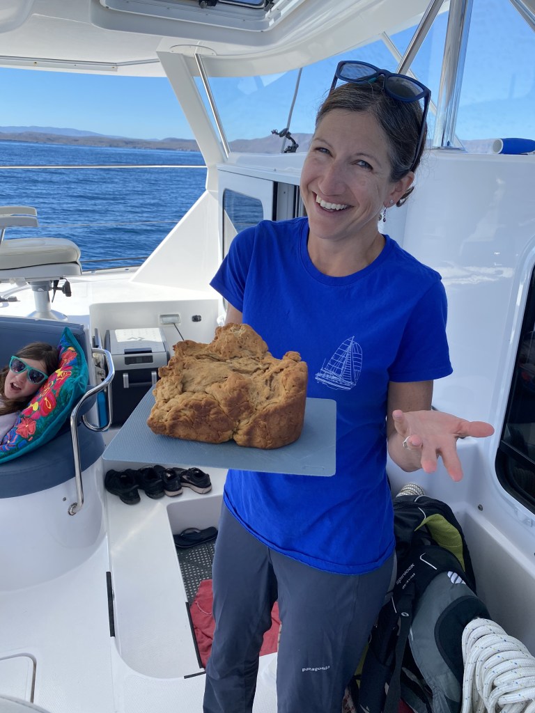 After a long motor north in rolly seas, all of us a bit green except for Gma Hyer and Calder, we had a lovely final 1-hour sail into our anchorage, Bahia Santa Domingo in Bahia Concepcion.  Even my loaf of bread felt too ill to rise properly!