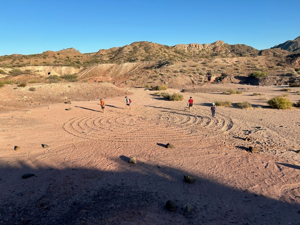 Hyer family walking labyrinth at sunset (Bahia Santo Domingo)