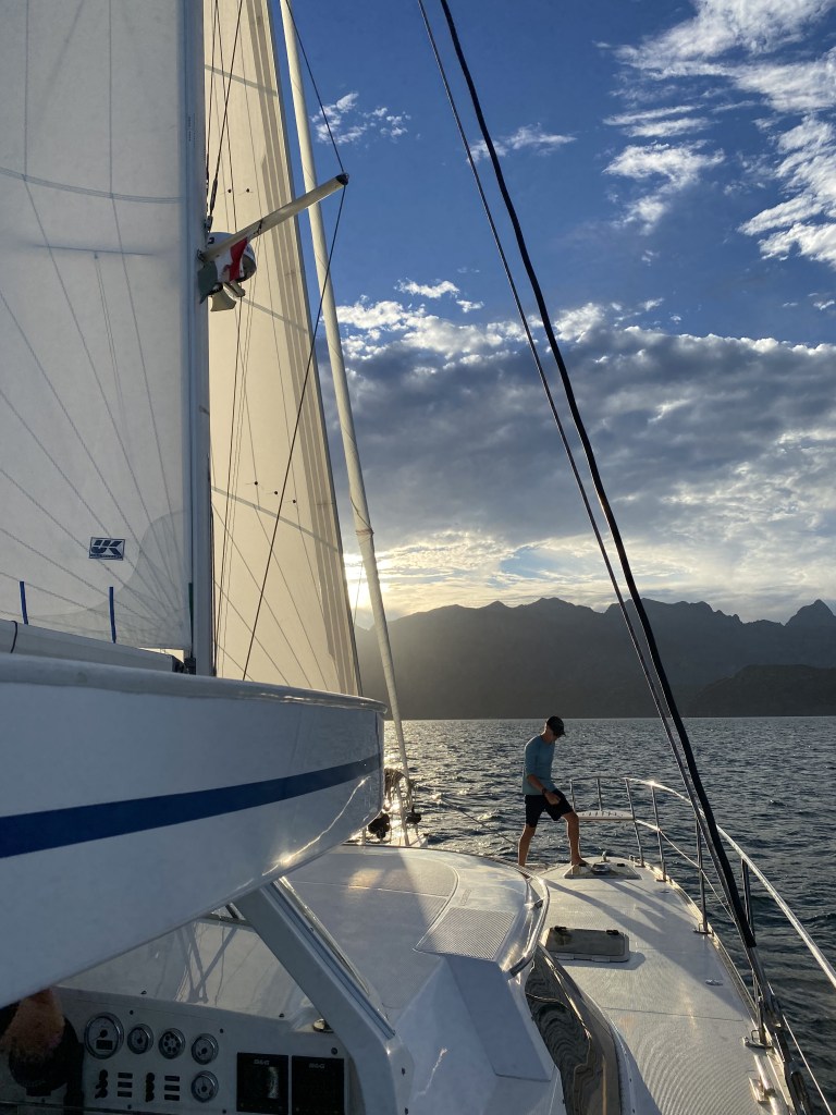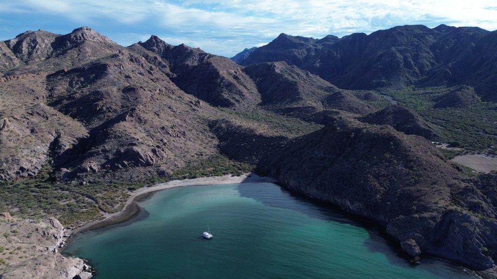 We had a mellow motor of 24 miles south to Aqua Verde, passing up the more populated northern anchorage in favor of the southern bight, the only boat in the tucked in turquoise blue waters which we jumped in promptly upon anchoring.