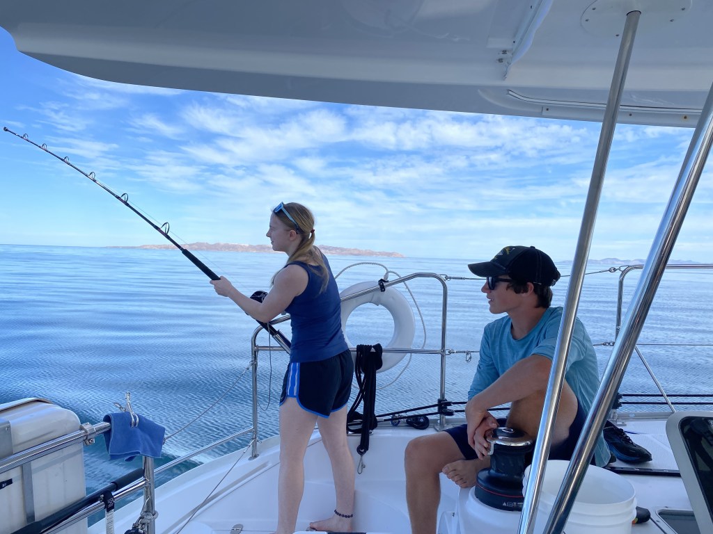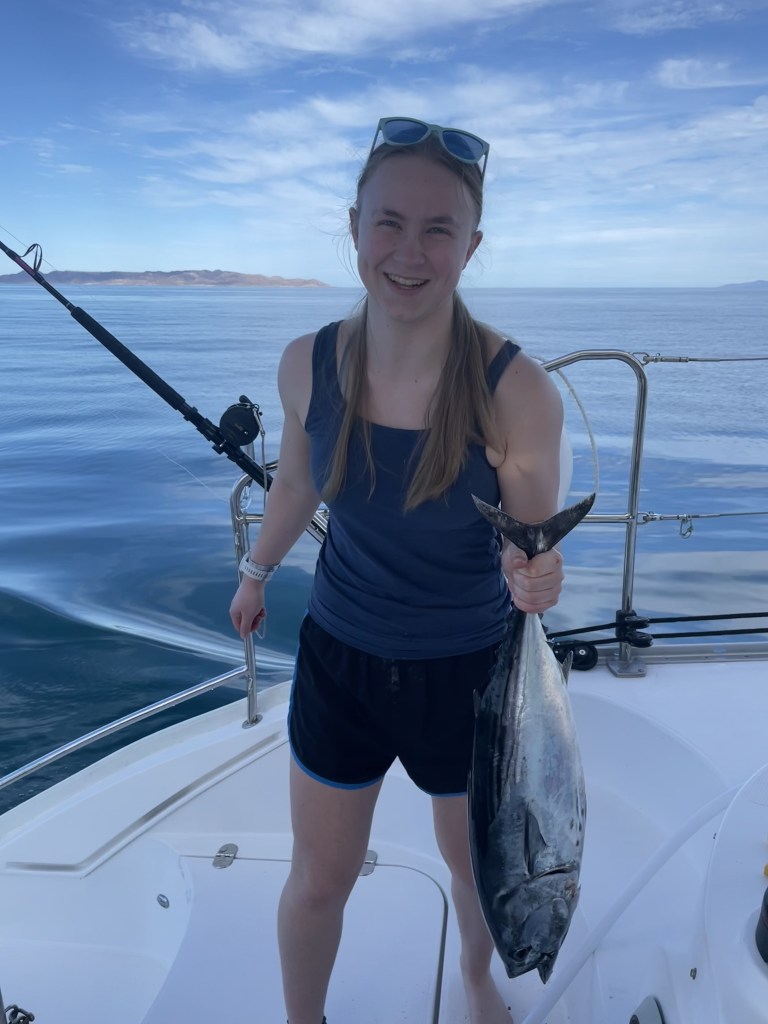 We treated the Whitacre family to new Mexican seafoods including: yellowtail fish tacos, skipjack tuna poke, yellowfin tuna steaks, coconut Baja shrimp, smoked yellowtail, and Spanish mackerel (Mexican Sierra) tacos. We love living off the sea here, as we did in Alaska.
