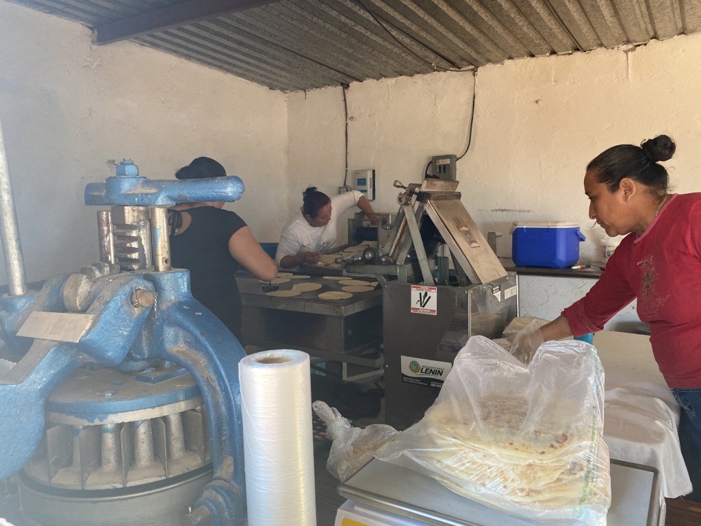 Walking through the palm-lined dirt streets of town, we bought 4 kg of fresh tortillas (both maiz and harina) at the Tortilleria, and numerous veggies and fruit at a local tienda. A highlight was when the lovely abuela who owned the tienda brought us out to her garden and cut us fresh cilantro and cradled tiny peppers in my palm, treasures.