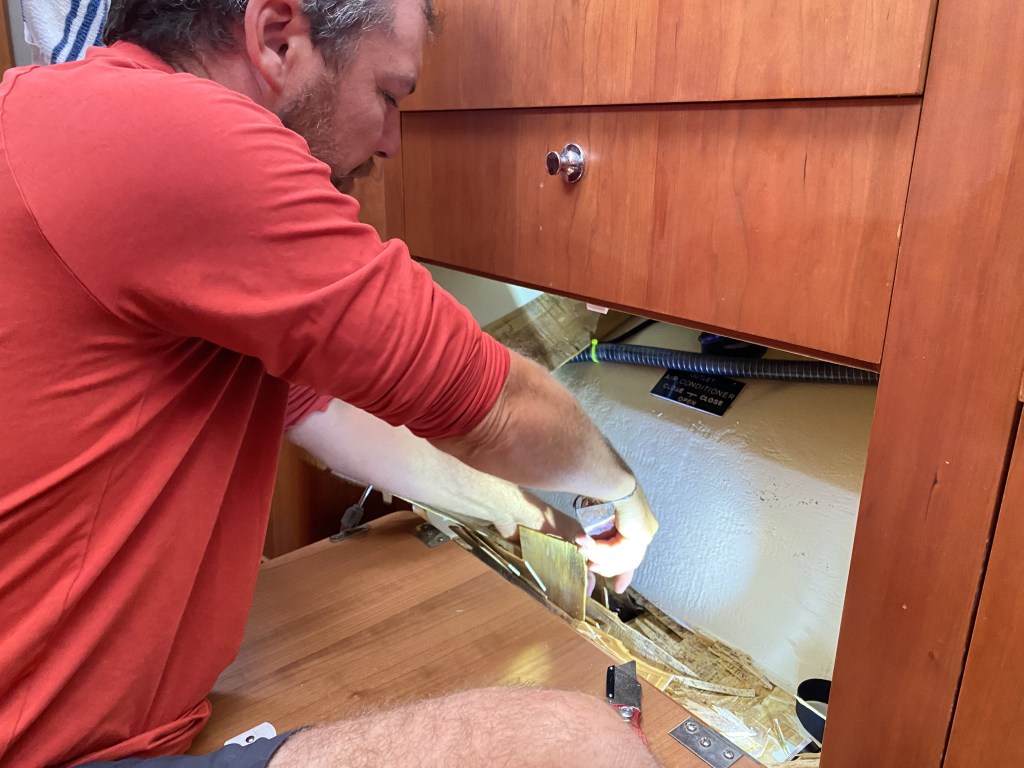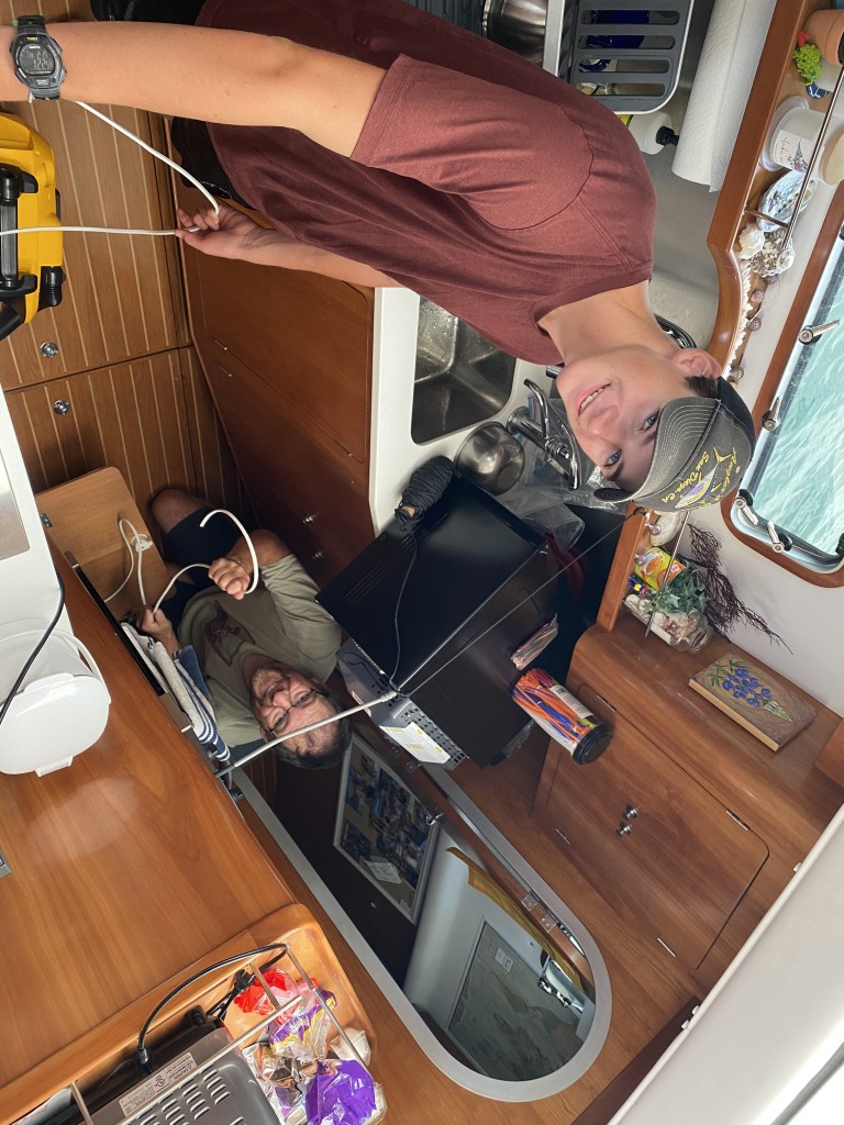 Unfortunately, we found a through hull (above water thankfully) leaking and Chris tore out many layers of saturated plywood in the bottom of a cabinet; another major project discovered to tackle before our crossing, which I titled simply “salt-water intrusion” on his growing list.