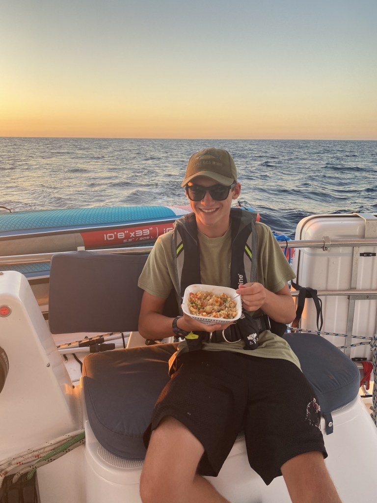 Calm enough to cook a sunset dinner of shrimp fried rice before we went into the next night’s shifts.