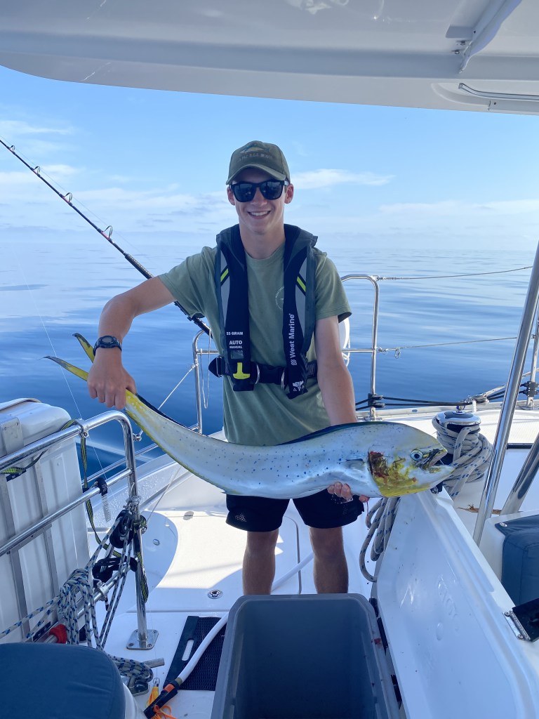 Excitement when Calder caught a swordfish, watching it leap into the air before it got off. At 9am, we saw our island destination, Isla Isabel, on the horizon. Calder’s fishing reel whirred, and he caught a lovely mahi/dorado that would become our dinner.