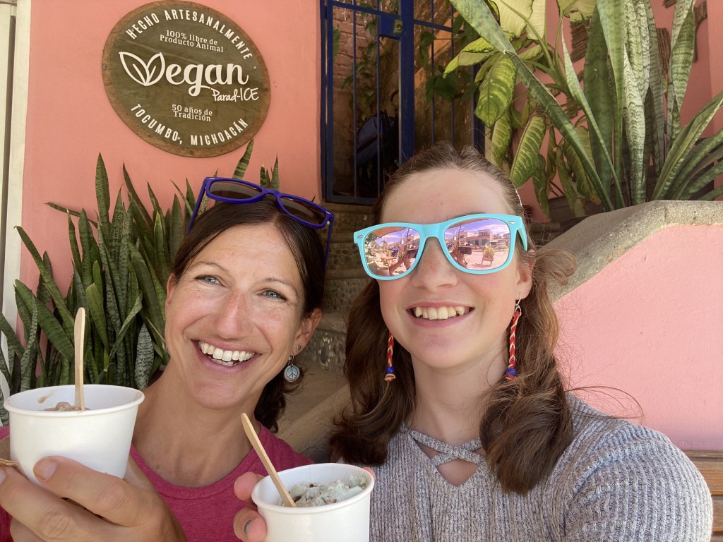 Chris’ foot continued to get better and he was taken off “foot rest,” and is back to being active. Cora and I found our favorite ice cream shop, as well as a man who sells yummy sourdough loaves every morning in the square. Energetic neighboring boat kids come over and play games and draw pictures. Their family had the experience of freeing four sea turtles they found wrapped in fishing net and they have been making earrings and bracelets out of the net to raise money for turtle rescue; Cora loves her earrings with a story.
