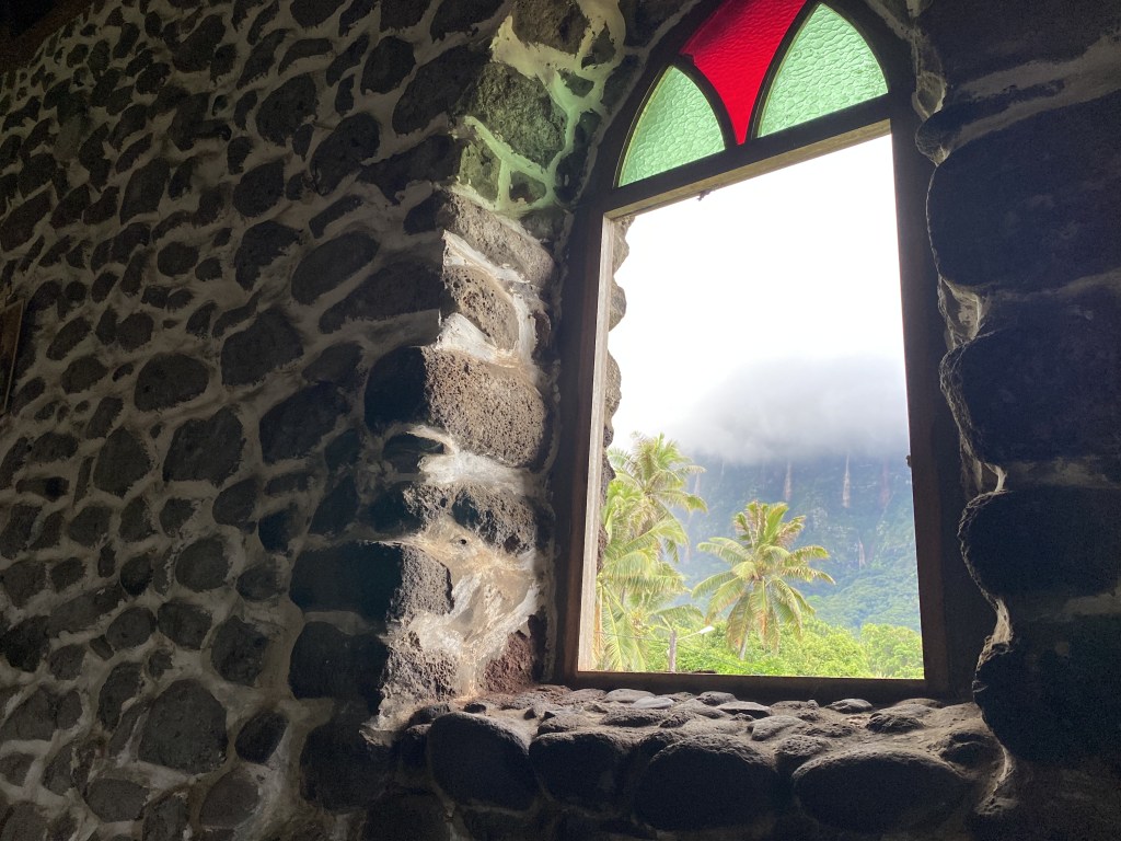 View from inside the church; note all the brown waterfalls