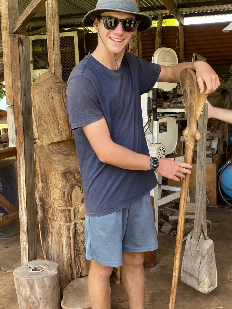 We pulled off at the workshop of a master carver (of both local woods and basalt stone), learning the process of harvesting the wood, drying the wood, and carving the tikis and other artwork. The gracious carver let us watch him work in his open shop perched in the breeze, using a combination of traditional tools and electric tools. Nothing there was for sale, as he is the artist commissioned for many larger projects in the islands, and was simply and graciously sharing his art with us that he learned from his grandfather and has now taught his son.