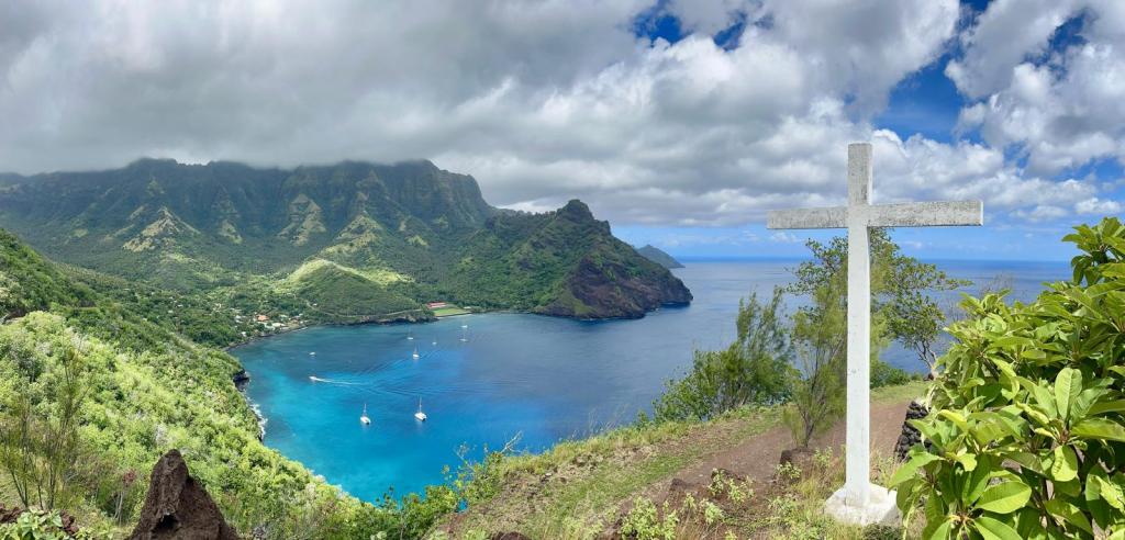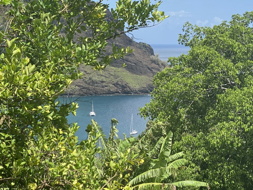 We continue to explore the Marquesas islands, planning to spend about 4 weeks here before our next passage to the Tuamotus, about 500 miles away.  Our trip across the Pacific Ocean is only about 1/3 complete and the next 6 months will be passage-making between island groups, each passage with its own challenges.  Thankfully, we get to “regroup” between each passage with island exploration, boat chores, and school.