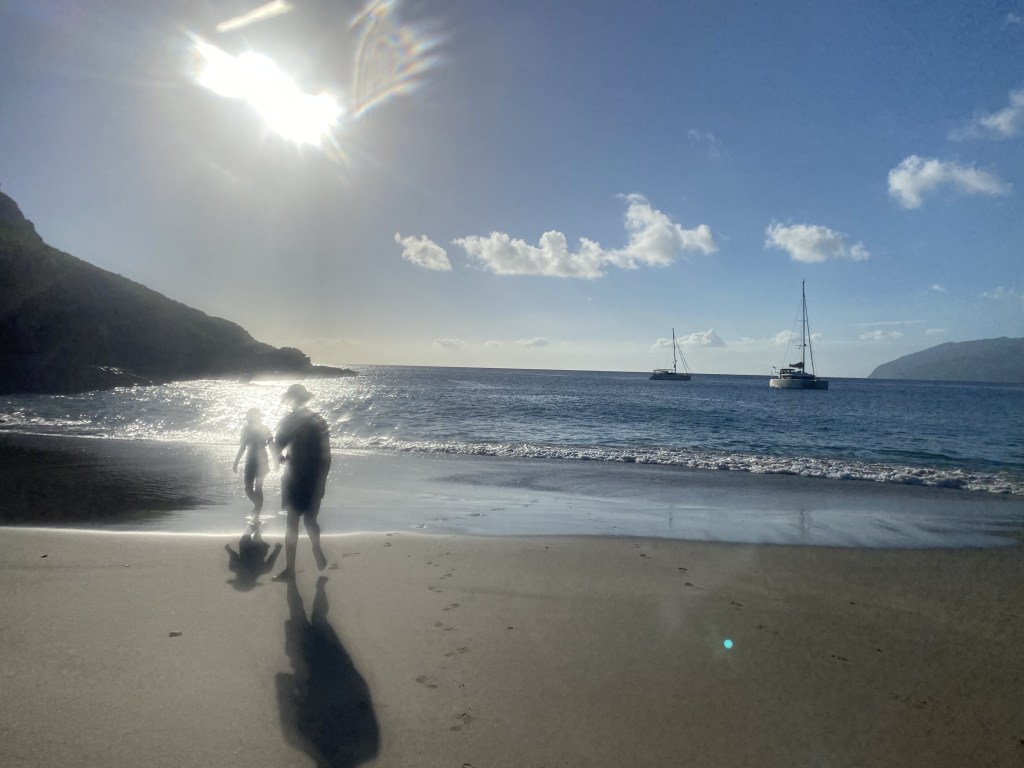 Just swam to shore from our anchored dinghy