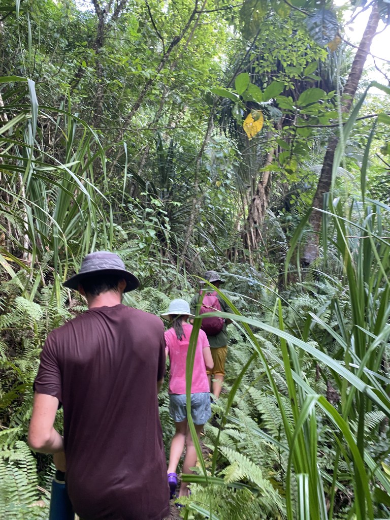 A nice walk through town, saw an eel in the fresh water stream and a squashed 4 inch long centipede with its pincers.