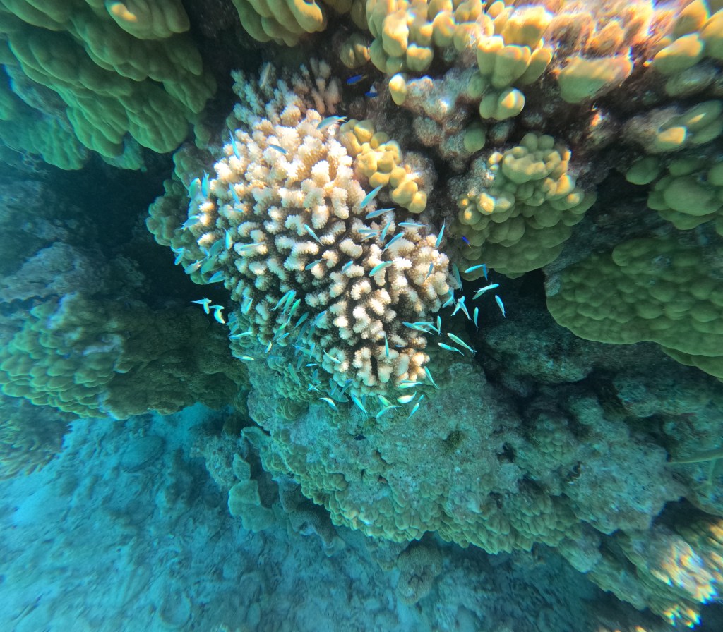 We dinghied over to a few coral bommies in the clear waters, jumping in to find ourselves in a beautiful aquarium; the clarity of water to marvel at the coral and brightly colored fish.