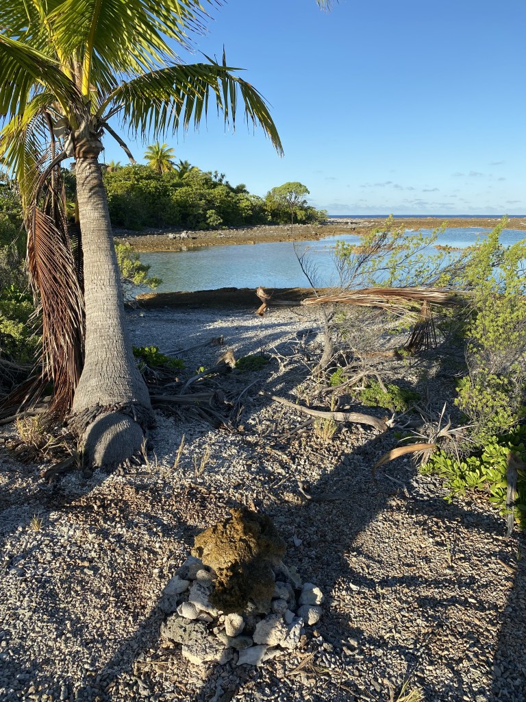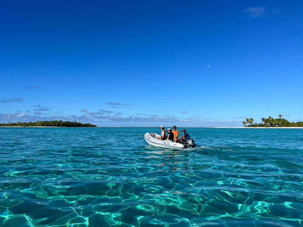 We visited with the couple from SY Wild Iris, who were out there in the night in solidarity, trying to slow down as well. Helped friends on Starry Knight unstick their anchor. Then slept well. The next morning, coffee and banana cake with Wild Iris before moving to the southeast end of the atoll, where we met up with another kid boat, Ella, and anchored in the most unbelievable waters. On the way over, we could see down to sandy patches in 70 feet of water depth! We worked through many bommies in deeper water to enter the turquoise shallow water, anchoring in only 8 feet with no coral heads around us. This is definitely our favorite anchorage thus far in the Tuamotus; I cannot begin to express the clarity of the turquoise waters, clearly visible swirls in the sand below.