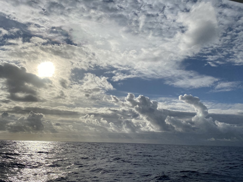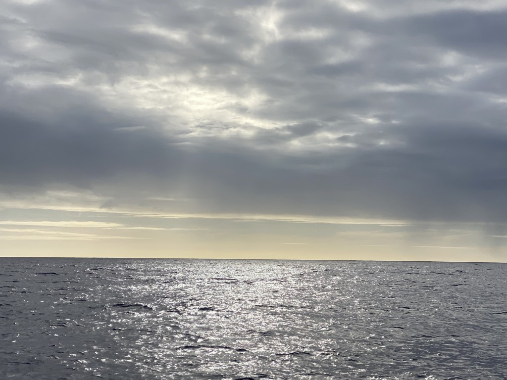 Conditions continue to be lovely this morning, sailing with our main and Code Zero in 15-20 knots of wind, seas only 1.5 meters. This is the life! Scattered squalls about. At noon, wind disappears. We have been advised to keep a 6.2 knot average to get into Opua, New Zealand before the systems hit, so we’re burning dinosaurs now. Wind filled in again and able to sail, so peaceful and calm as we sail along.