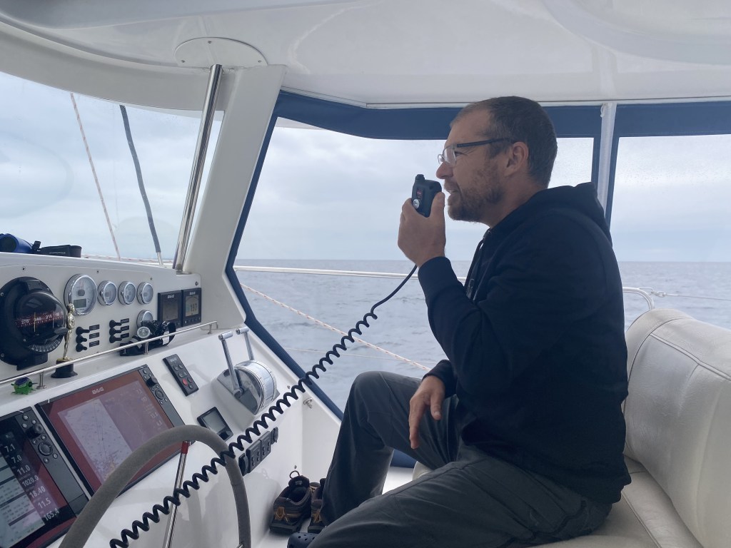 Water looking darker….colder.  12 miles out, announced ourselves to Maritime Radio on VHF 16; NZ accents are fantastic.