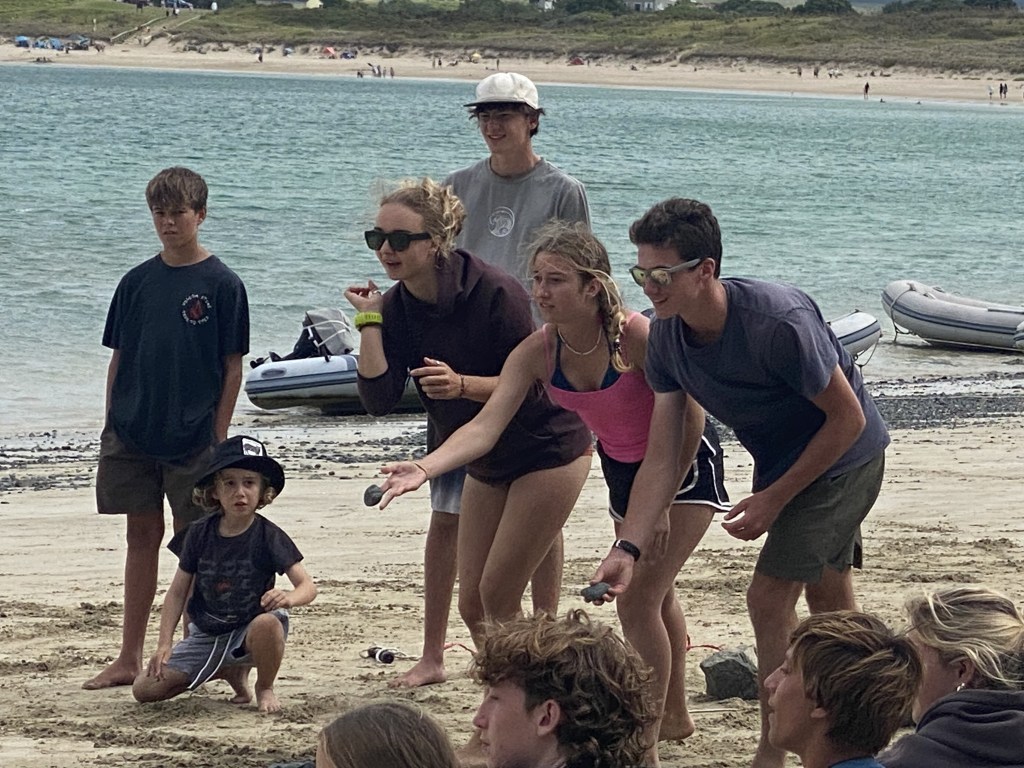There is even a café in one cove where we enjoyed a late lunch while lounging in beanbags, trying to protect our chips from the stealthy banded rail who wanted to feed its chicks amongst aggressive silver gulls. Calder was convinced into the cool waters by his friends to go spearfishing for the first time, excited to bring home his first speared catch, a striped parore.  We may need to invest in heavier wet suits with hoods if he wants to continue this form of fishing, which he said felt more like hunting.  I thoroughly enjoy seeing our kids having these new experiences that push their comfort zones.