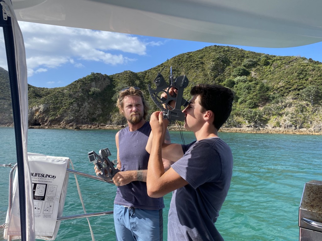 Tyler (from SV Mara) giving Calder a sextant lesson
