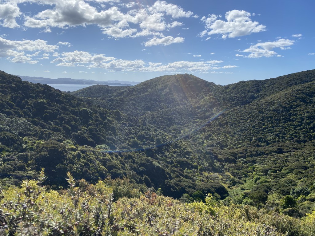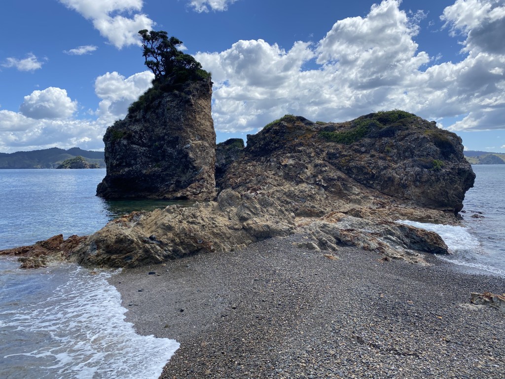 One of the largest islands, it has walking tracks that we explored, through manuka groves, along stunning cliffs, and across sandy beaches.