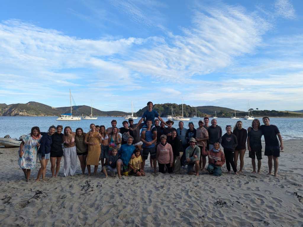 Matai Bay on the Kerikeri Peninsula, the furthest north we would venture in the Northland, turned out to be the perfect location for a New Year’s gathering for 8 kid boats, as well as a secure sandy anchorage for winds that hit 42 knots. Calder was stoked to wing foil daily.