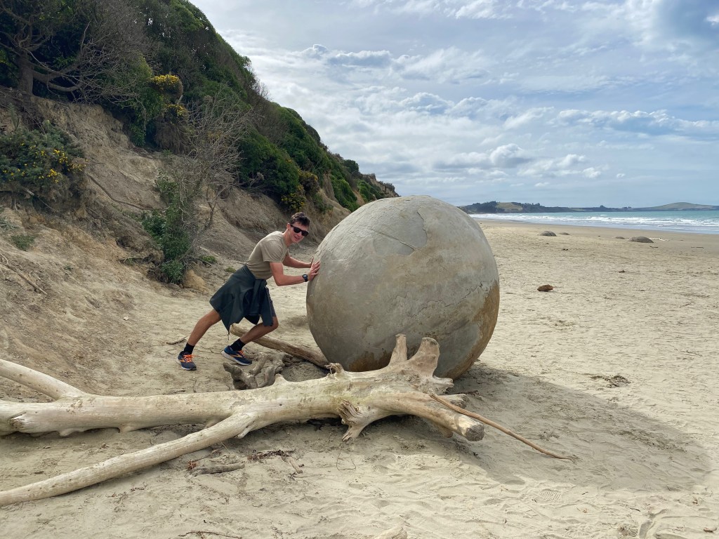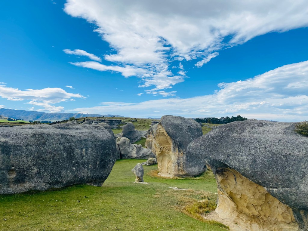 Up the coast, we walked around and posed with the Moeraki Boulders, spherical concretions scattered across the beach that inspired playfulness and curiosity.