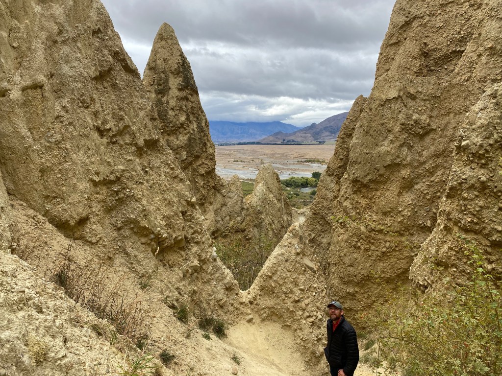 Hiked around the Omarana Clay Cliffs for a bit, Chris nervous about the active erosion going on around and above us, visible cracks in the cliffs, as well as rocks all about. I think we may be a bit shy about risk-taking at this moment, as we scurried through the tight places quickly.