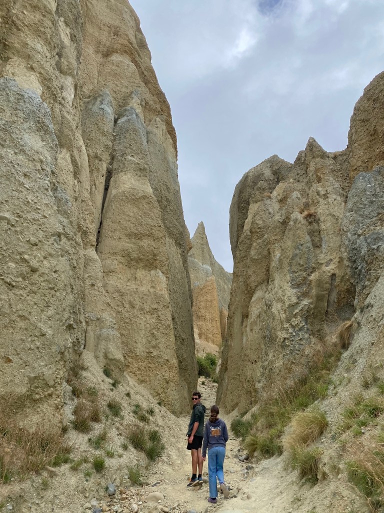 These rocks were formed through millions of years of weathering and erosion, where softer limestone layers were worn away, leaving behind the large, rounded boulders that resemble elephants. We also viewed Māori cliff paintings, created with charcoal and ochre, though sadly, some had been vandalized.