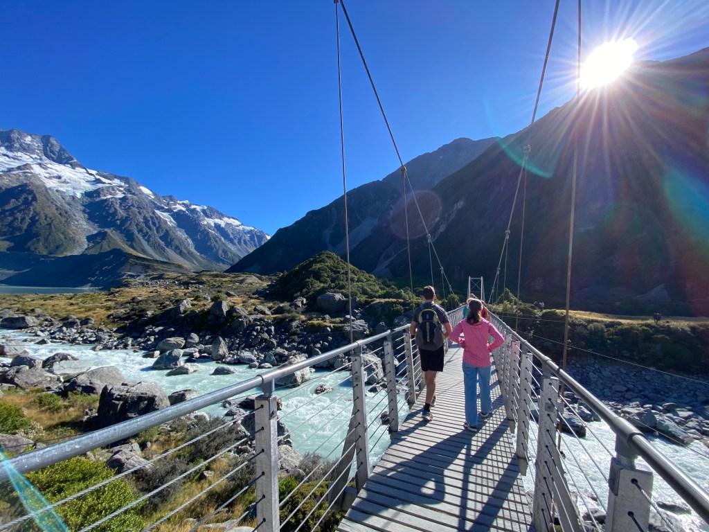 We hiked to the Tasman Glacier Lookout and Blue Lake (which, despite its name, is actually green), tackled the stunning yet crowded Hooker Valley Track—where lines formed at its swing bridges—and started the stair climb of the Sealy Tarns Track before it finally defeated us.