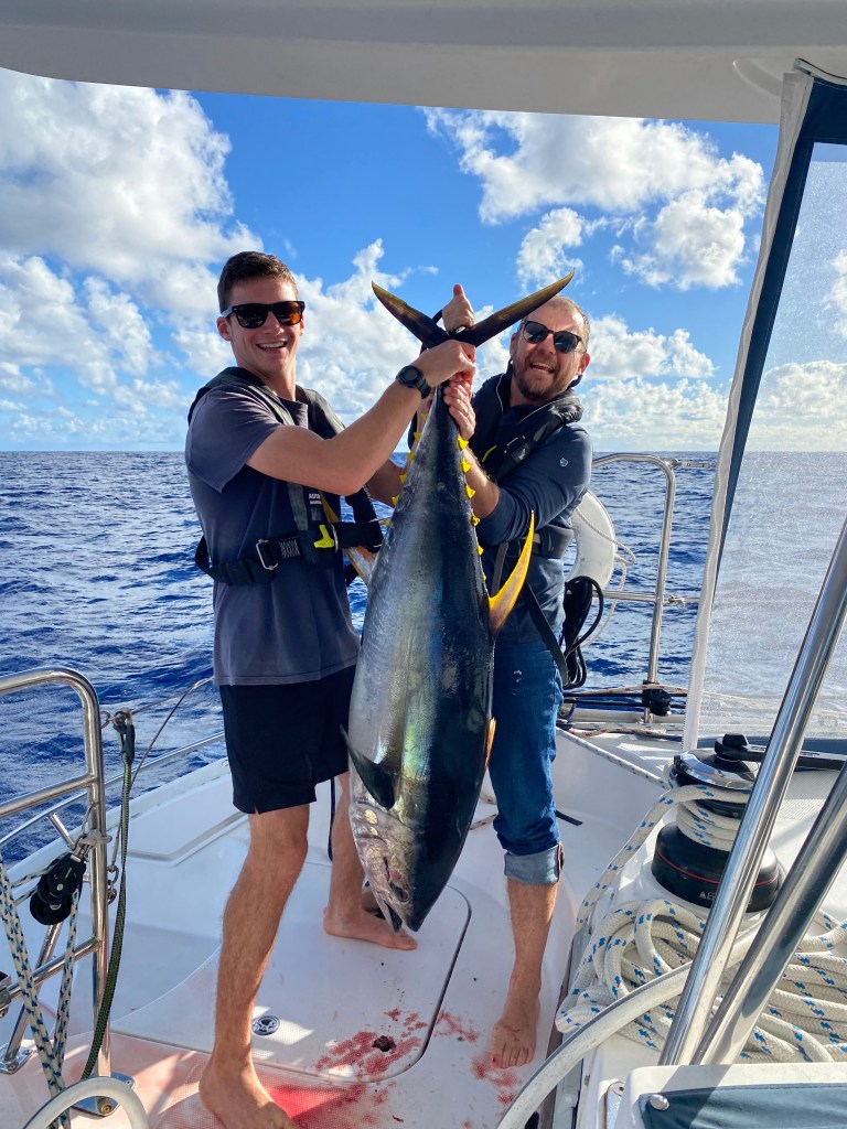 The next two and a half hours were spent filleting, cleaning, and vacuum packing the meat in order for it to get in the spare freezer before it degrades in any way. All of us aboard Terikah are very thankful for this amazing fish and will share it with friends as soon as we arrive in Fiji! This big of a fish also means no more fishing until we have freezer space again, which will likely not be until Fiji, so I may finally have a chance to let my hands stop smelling like tuna, as they have since day one! There are worse problems though, eh? – Calder