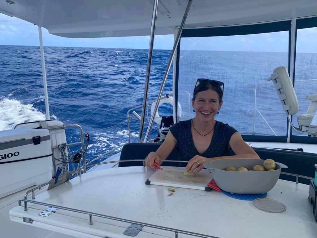 Cora finally got her sea legs! We sat up together on watch, talking, singing, eating chocolate, and exclaiming when waves smashed the boat sending spray! This night’s watch with Cora was a highlight for me.