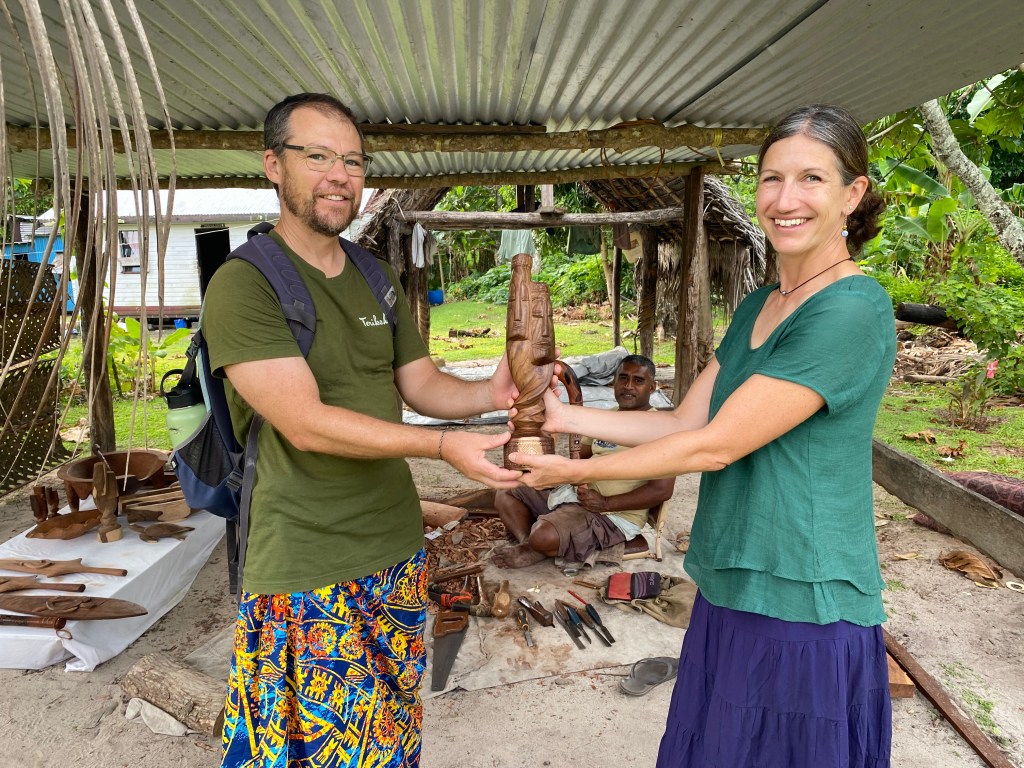 As they knew we were leaving, they wanted us to come back for a “farewell dinner gathering,” asking us to bring some kava and food to share. A few nights later we returned, picked up our carving from Seta, and joined Miji and Lani for our farewell dinner.