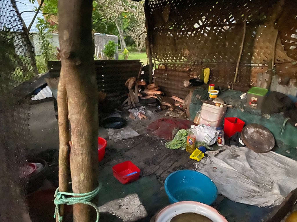 The cabinet is the only piece of furniture in the one-room home, as they sleep on mats at night and sit on the ground for meals and hanging out. They have no refrigeration so food for the day is made that day. After enjoying kava with locals, Cora and I were excused to help Lani lay out dinner on the floor in their home, quite the spread. We brought deer meat to share. Miji said a few words, Rachel said a prayer, and Miji excused himself back to the kava (explained that he did not eat when drinking kava).