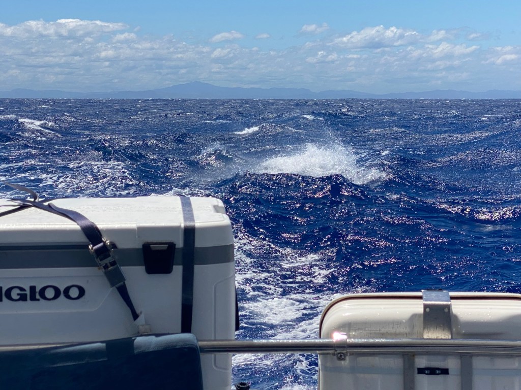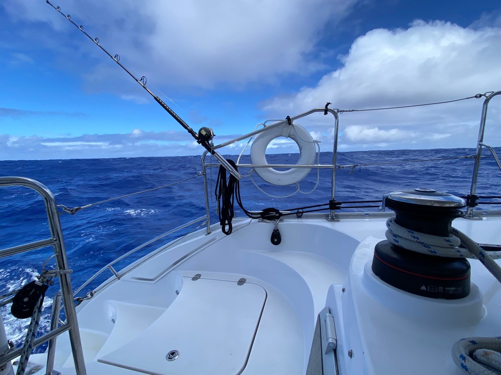 We were warned that this passage would be “sporty,” a term that cruisers use often. But what does it really mean? Is it a certain combination of bigger seas and winds? Is it sporty, like a sport, where you need to be on your toes and more active? Or is the term sporty, pardon my French, more like merdique? I think for us, it has been a passage that has kept us on our toes, quite rolly, and a bit bigger conditions than we prefer; but is it the Pacific Ocean, poorly named.