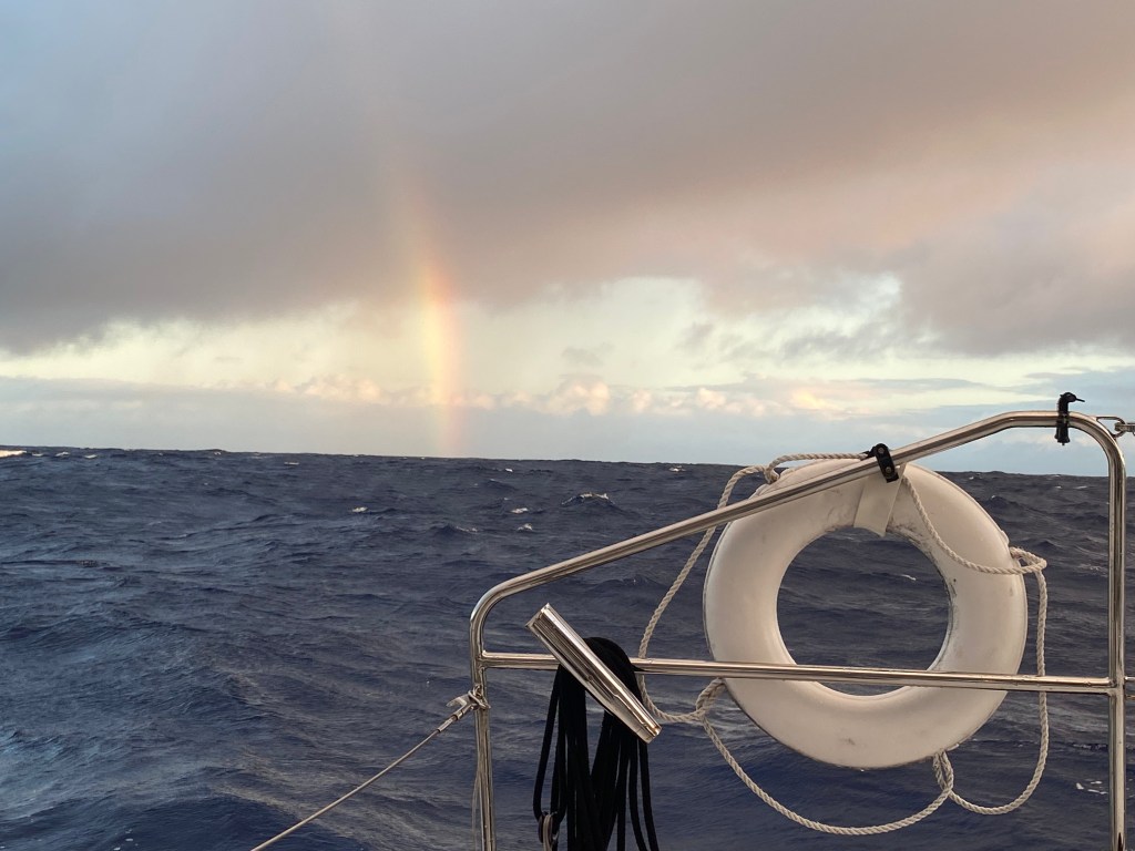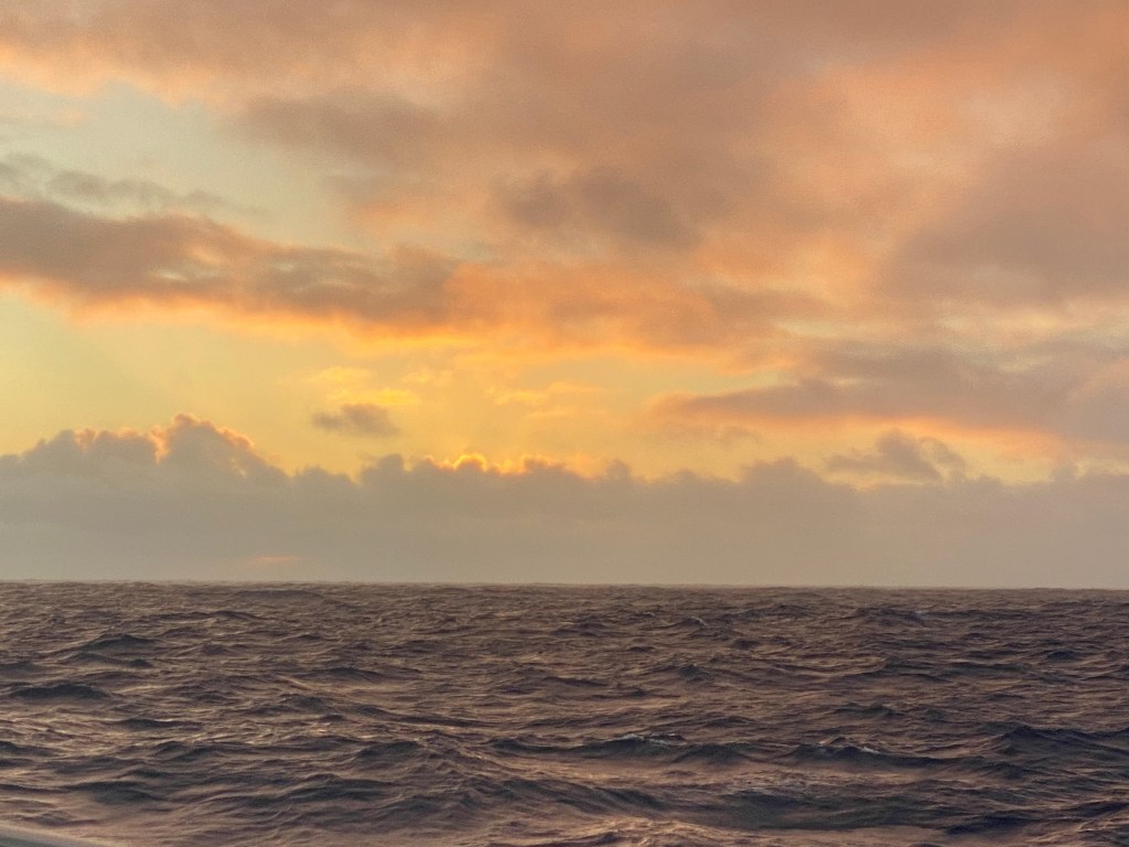The winds start to decrease and we slow down…too slow to get to our destination in time. This is perfect “Code Zero” sailing, but ours is out of commission still and tricky to get out with winds blowing it around. As the seas calmed, we decided to look at the sail closer. A plan was hatched and up she went safely and uneventfully. Ahhh…sailing along in 15 knots of wind, seas calming. This is the life. Kept the Code Zero up overnight throughout my watch, lovely sail. Calder had a motor-sailing passage. Chris is just finishing his motoring passage. Minimal wind and have to get to our destination by 7am tomorrow to make the pass in between the coral.