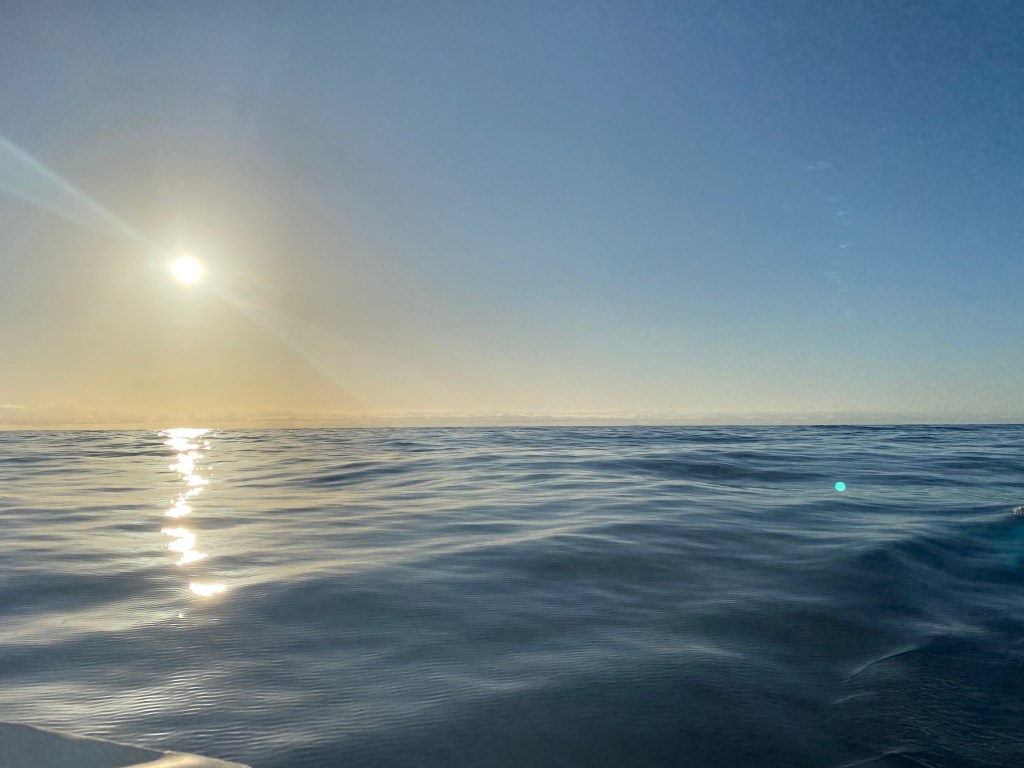Woke up to Chris at the helm, enjoying an excellent sail toward our destination. Winds a perfect 18-20 knots at our fastest point of sail. Seas (both swells from two directions and wind waves) present, but not uncomfortable. We are enjoying the wind while we have it! Even had a small cup of coffee (hadn’t sounded good before). Our router had given us a waypoint to head towards, but we were so excited sailing that we went quite a bit east of that point…and found ourselves eating 1-2 knots of current! We sheepishly asked how to get out of this current and are trying to do that, but looks like we’ll be in it for 80 hours. I guess that’s one of many reasons we have a weather router!