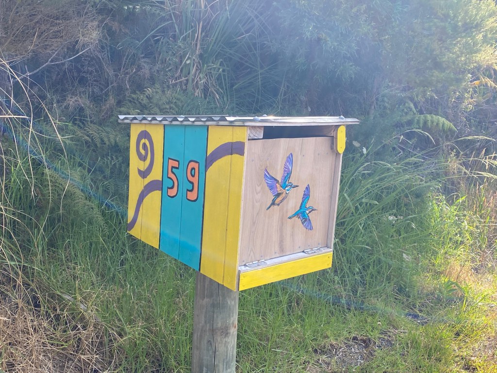 Moved around to different spots in Whangaroa Bay, where we rested and recovered from nasty colds. We went for a few walks, noting another reason we love NZ – creative mailboxes! There is no official type of mailbox that needs to be posted and people get quite creative with their colorful mailboxes of all shapes and sizes.