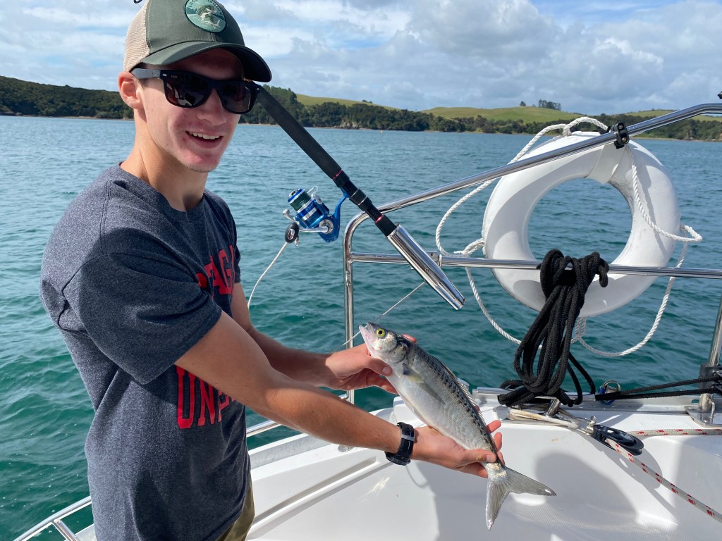 Going though Kent Pass, we caught our first Kahawai, an iconic New Zealand fish. Some use it for bait, but we come from the land of pickled herring and don’t scoff at eating so-called baitfish. The Kahawia are also called Australian salmon and made a delicious dinner. And they were plentiful and fun to catch!