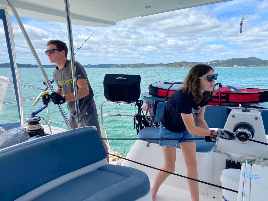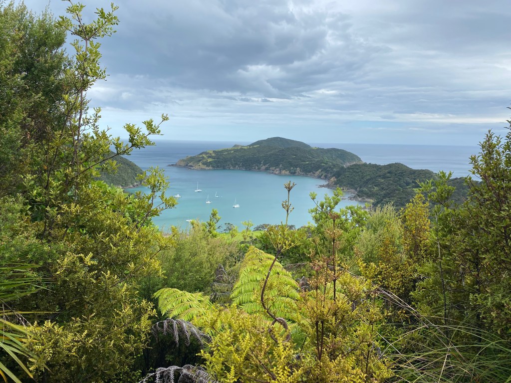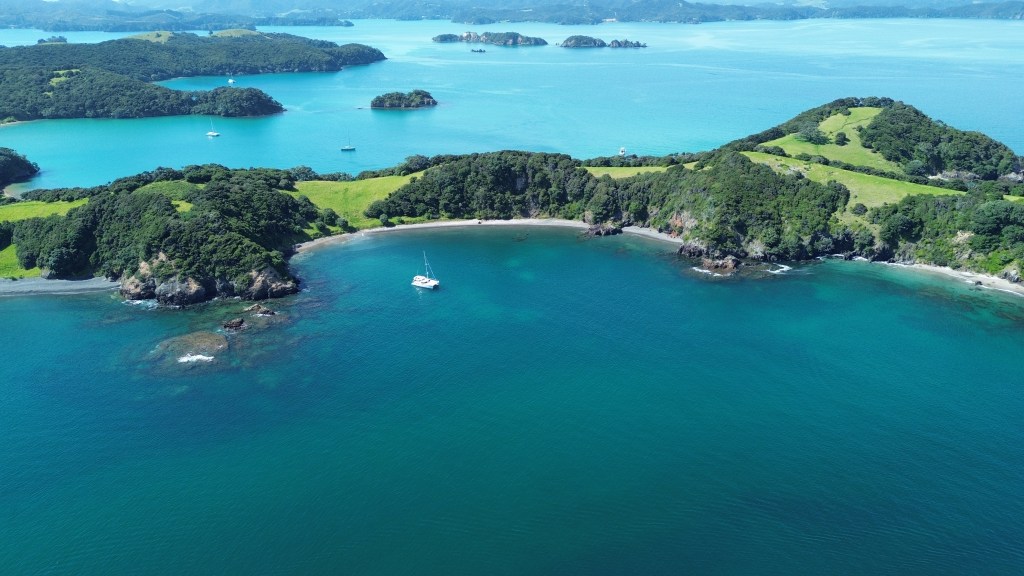 We needed to get back south towards the Bay of Islands and we were taught a lesson again – passage expectations aren’t good to have. We had fully envisioned a lovely downwind sail. Instead, seas on the beam with light and flukey winds, combined with our eustachian tubes being plugged up from our colds led to a slow nauseating passage. At least it was only 4 hours and we tucked into lovely Wairoa Bay with Te Pahi Islands, anchoring just before the rain squalls arrived. It was our expectations that made it anything other than a fine run today. It’s good to watch the weather and be prepared, but not to hold on too tightly to a false sense of control.
