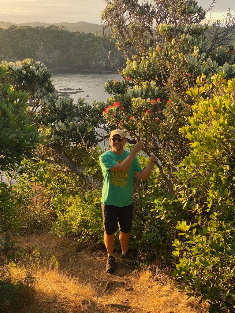 We hiked up to a lush waterfall, a lookout point, and along the pohutukawa lined beach to celebrate the Summer (yes, summer) solstice.